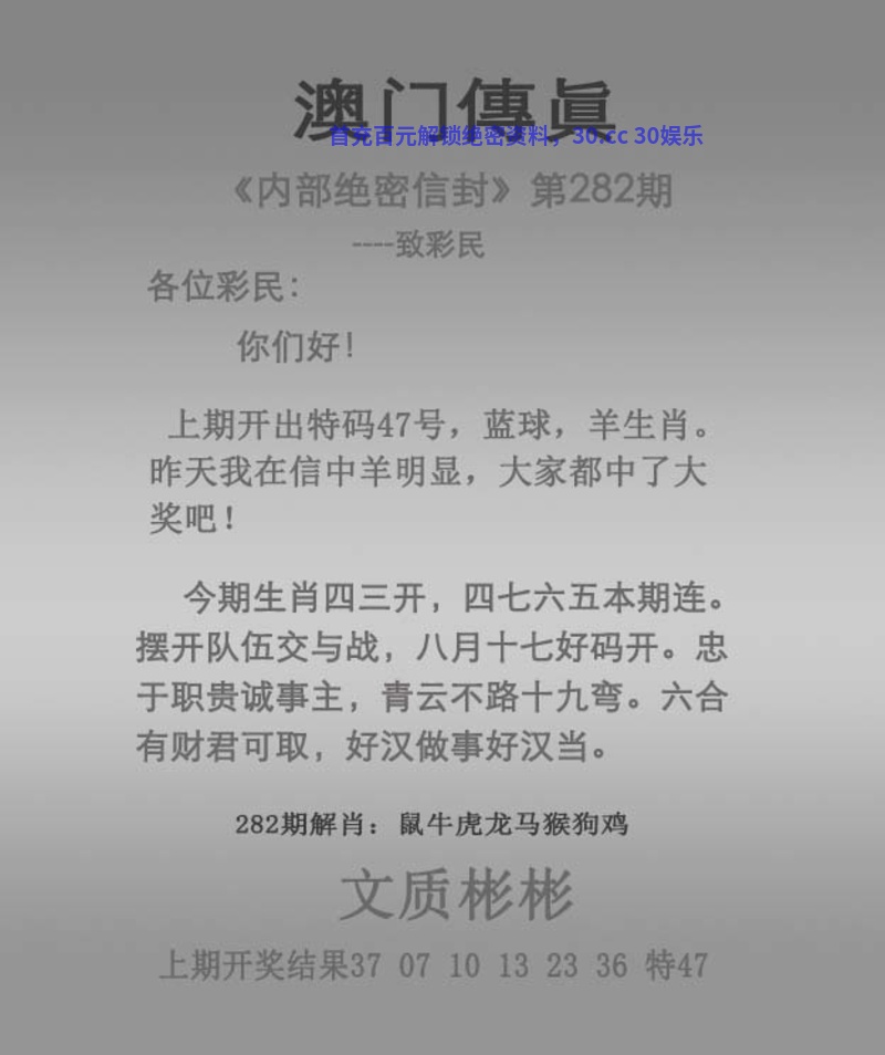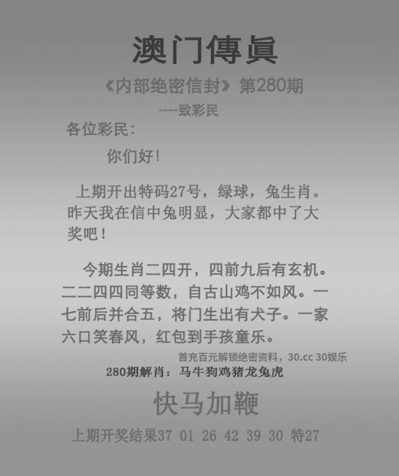 解:今期生肖三十开,四下五上是灵码。三十解鼠,四下解03兔,五上解06鼠,三千佳丽住后宫,火中有肖是五七。三千佳丽解兔蛇羊鸡,火肖蛇马,风流才子俏佳人,玄机道破点三二。风肖兔虎龙,三二解狗,一语双关话特码,二七美女大家求。二七解兔。